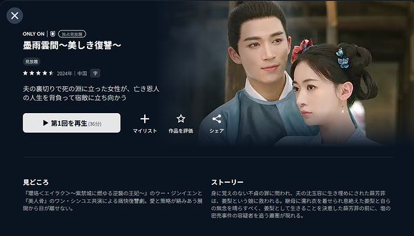 2025年12月4日よりU-NEXTで「墨雨雲間~美しき復讐~」の独占見放題配信がスタートしました!